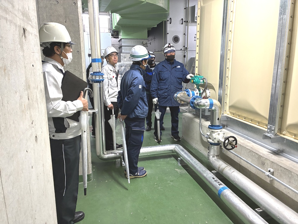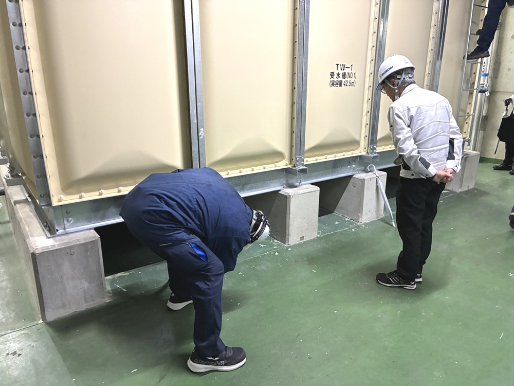 配管接続状況、水槽の据付け状況や緊急遮断弁の作動確認